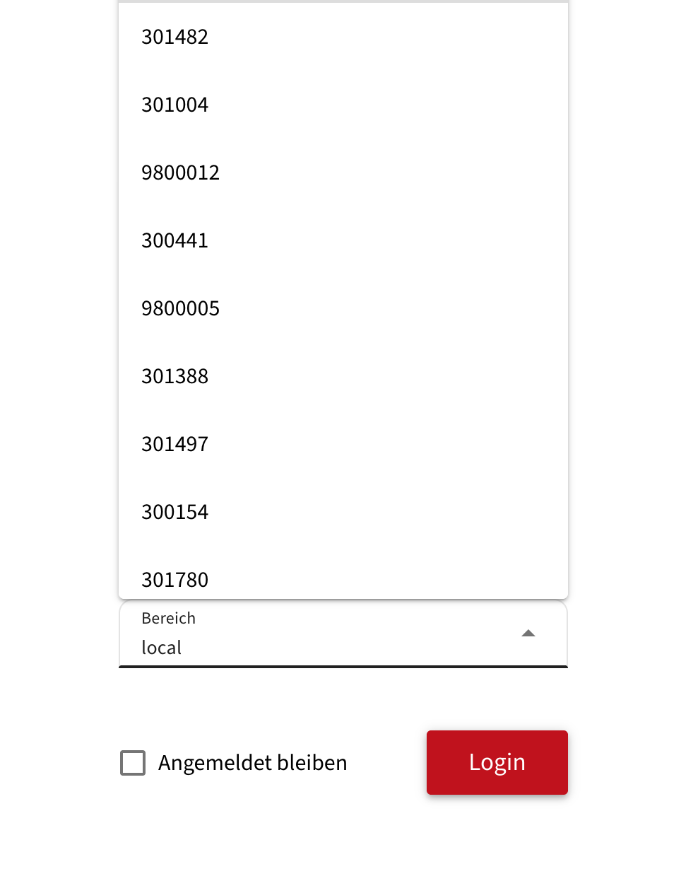 Unter „Bereich“ suchen Sie Ihre Nummer (im Normalfall entspricht diese Ihrer Kundennummer) und wählen Sie diese entsprechend aus.